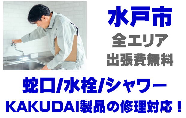 水戸市で水栓メーカーKAKUDAIの修理業者をお探しなら当社までお気軽にお問い合わせください。蛇口の水漏れ、シャワーの故障などカクダイ製に関するトラブルなら何でもご相談ください。